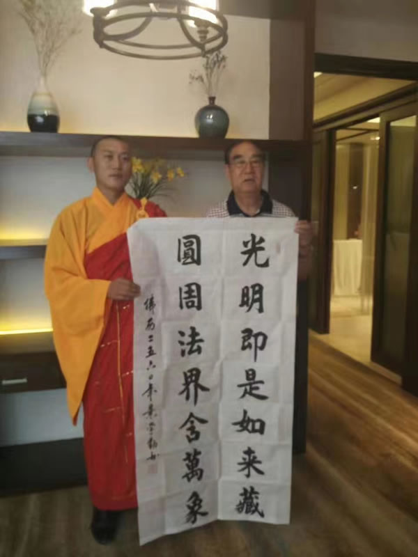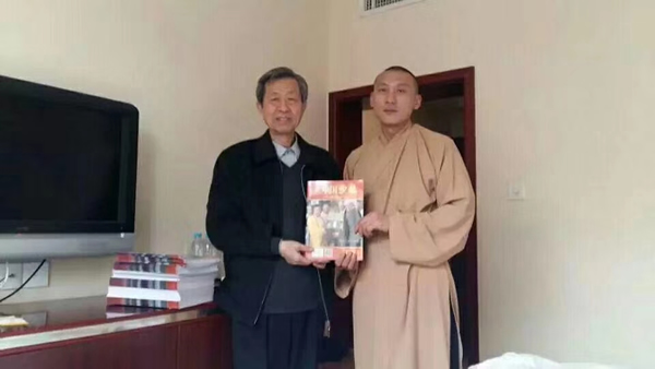 中国少林杂志社社长释延明法师与方丈大和尚心广法师合影纪念