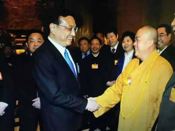 中共中央政治局常委全国政协主席于增胜会见嵩山少林寺方丈释永信大和尚