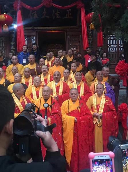 中国少林杂志社社长释延明法师和少林寺相国寺白馬寺风穴寺定国寺五大寺方丈合影留念