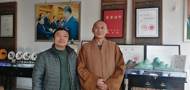 释延明法师会见全国人大代表全国劳动模范正高级工艺美术师王一君大师