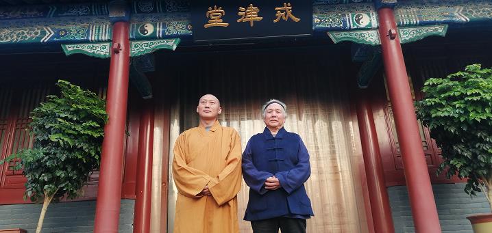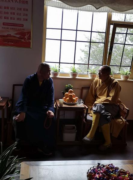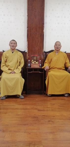 释延明法师和河南省人大代表、开封市佛教协会会长、相国寺方丈释心广大和尚合影留念