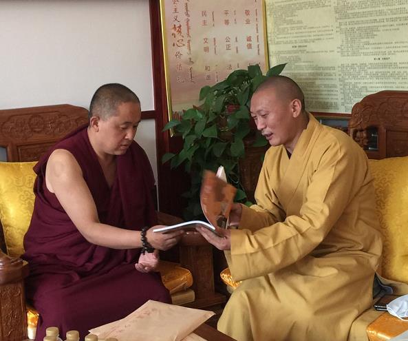 中国少林杂志社社长释延明法师会见五台山五爷庙格桑桑杰活佛
