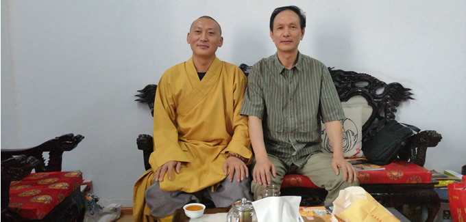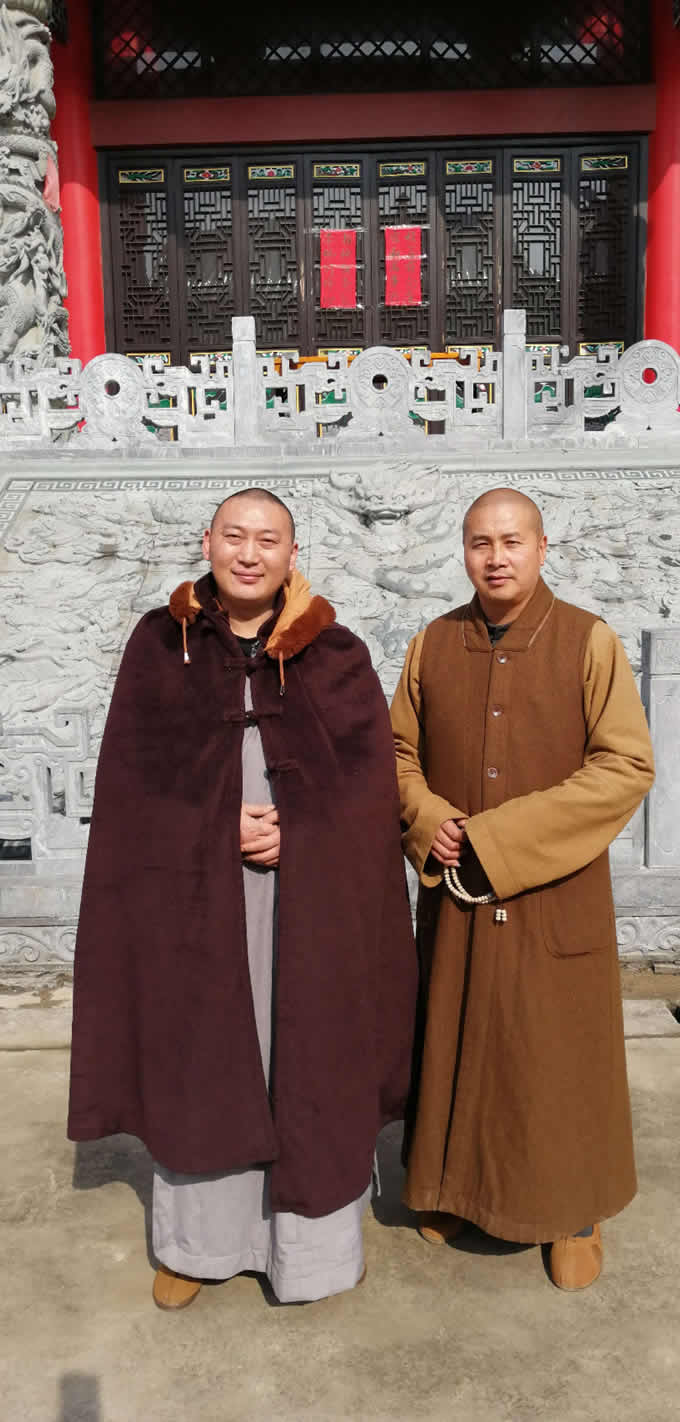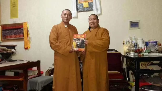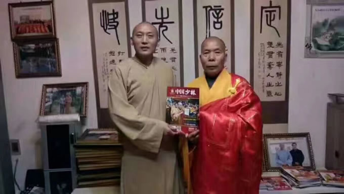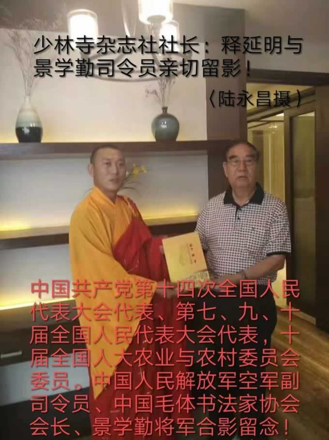 少林杂志社社长释延明与景学勤司令员亲切留影