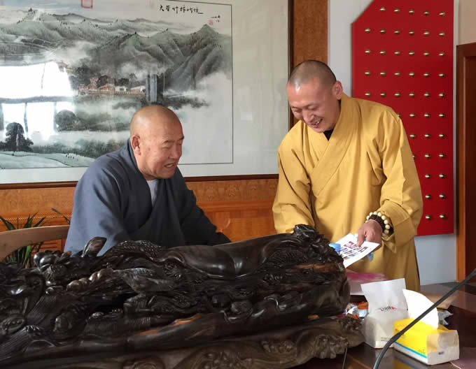 释延明法师会见五台山黛螺顶知客释昌胜法师合影留念
