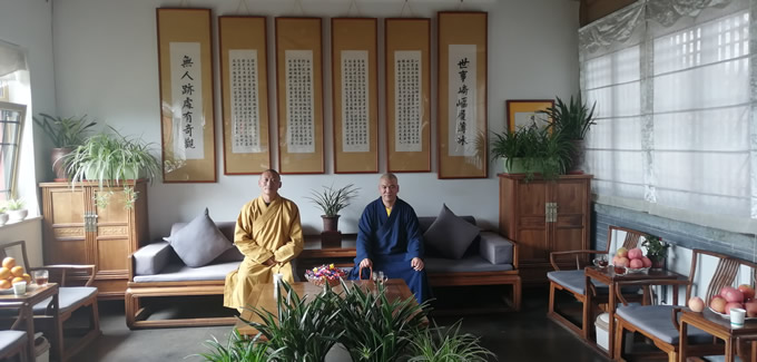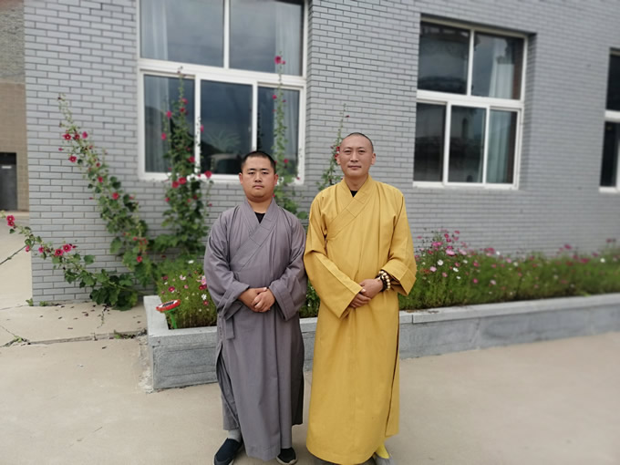 释延明法师会与五台山竹林寺方丈释妙江大和尚侍者释义庄法师合影留念