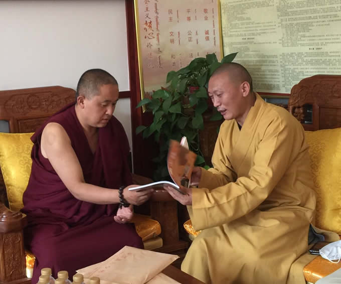 释延明法师会见五台山佛教协会会长、五台山黛螺顶主持释昌善法师合影留念