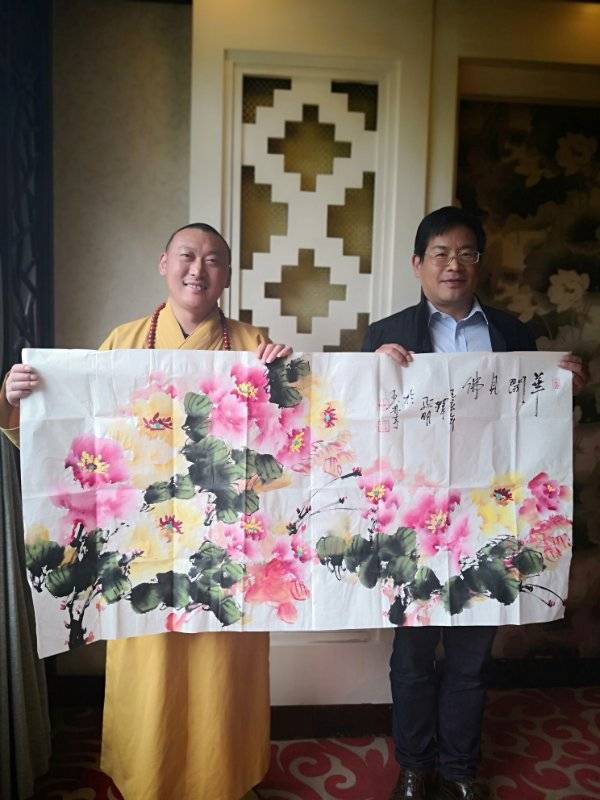 >> 释延明法师会见河南省法制报总理王海并合影留念